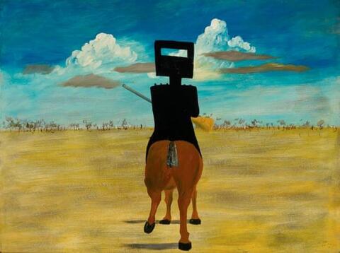 Website alert: An article by Peter Carey on writing The True History of the Kelly Gang has just introduced me to the series of paintings by Sidney Nolan that inspired the novel, one of his best. No doubt about it, encountering these strange pictures could set off a wild desire to tell stories! For more images, see also Sidney Nolan's Ned Kelly—in Pictures.