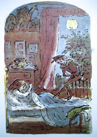 Blog post alert: When I ran across a reference to Edward Ardizzone's illustrations for J. M. Barrie's Peter Pan: the Story of the Play presented by Eleanor Graham, I was tickled. Ardizonne's illustrations for Eleanor Farjeon's Little Bookroom have been deep in my heart for a lifetime. I ordered a used copy of Pan. It arrived. Ardizonne's light-of-touch pictures were as pleasing as I had hoped. And they set me thinking: Who else besides Arthur Rackham had done interesting pictures for Peter Pan? No one came to mind, so I thought a blog post musing on which stories attract multiple illustrators and which ones don't might be interesting.