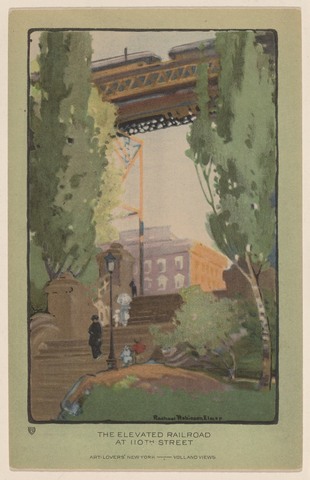 In my work-in-slow-progress, "Anonymity," I have given my main character, Mattie, an apartment near 110th Street in New York and sent her walking through Morningside and Central Parks. In order to do so, I've looked at lots of historic photographs of the area, which was being built up in the first decades of the 20th C. It looked raw. By contrast, this postcard by Rachael Robinson Elmer makes it look lush and glamorous in a very urban way.