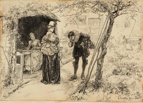 When I looked up the word bewilderment in the OED to see when it was first used, I was startled by an 1884 citation to a novel by Willian Black called Judith Shakespeare. Yep, there really is one about William Shakespeare's daughter. It was first serialized in Harper's Magazine, vol. LXVIII, with illustrations by Edwin Austin Abbey. I took a look at the text and decided its Prithee style of historical fiction wasn't for me (nor its likely Victorian attitude toward women). Nevertheless, I'm still amused that it exists and enjoy Abbey's illustrations. For two more pictures from Judith Shakespeare, click here and here. For more of Abbey's work, including paintings, click here.