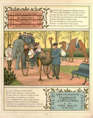 When Edward takes his nephew Eddie to the Parisian zoo, the Jardin d'Acclimatation in the Bois de Boulogne, they see an ostrich pulling a cart. Although I had read about the ostrich, I had never seen a picture of it until I ran across Abroad. Illustrated by Thomas Crane (1808–1859), father of the far more famous illustrator Walter Crane (1845–1915), it follows an English family across the Channel and through France. Abroad conveys how a visitor in a foreign country finds that everything looks new and different.