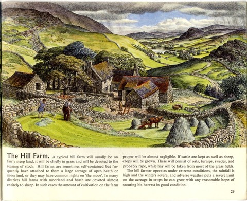 Another image I have run across as I review my files is this one from Farm Crops in Britain. I love models and diagrams and illustrations that can help me visualize settings within a story. This page, for instance, is packed with information about walls and buildings and activities for a farm in stony country. I tucked it away for reference; but in addition, Stanley Roy Badmin was a pleasant illustrator and landscape artist. I'm glad I discovered him—and have now rediscovered him!