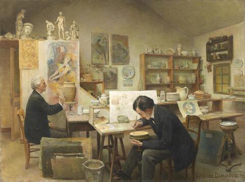 At one point when I thought Jeanette might try to earn money to pay for her art lessons, I considered sending her to a porcelain factory to paint vases as the men in Dammouse’s picture are shown doing. An echo of that theme lingers in the porcelain manufacturer from Limoges who attends the Read More