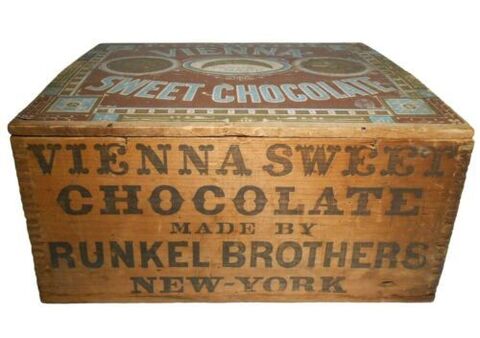 Blog post alert: One of my heirloom treasures is a wooden Runkel Bros. Sweet Vienna Chocolate box from my great-grandmother's kitchen. I have used it as an ornament in my own kitchen, as a computer stand, and as—oh, I don't know—a talisman of some sort. Looking at it in this season when chocolate becomes important sent me off on an internet search. It landed me on A Golden Age: Chocolate in New York, 1850-1900, which has a section on the Runkel brothers and lots more. Enjoy!