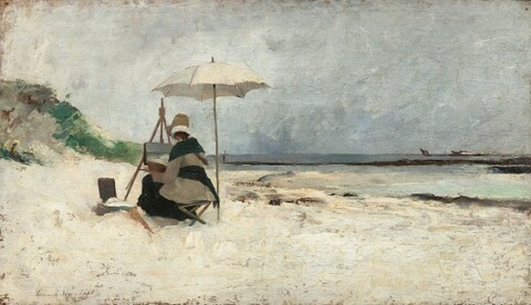 Woman artist on a Breton beach
