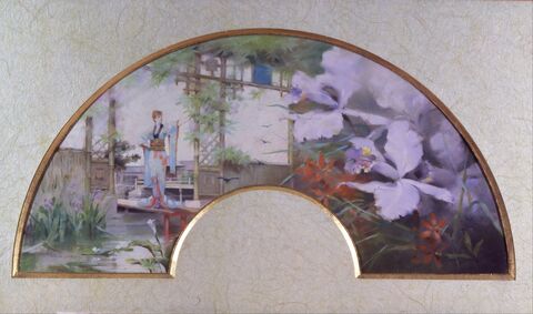 A quick follow-up to Bernhardt and Japonisme. Here's a decorated fan painted by female artist Louise Abbéma portraying Sarah Bernhardt in a kimono. What better to inspire some detail or other for a new story set among women in Paris at the time of the 1889 Universal Exposition? For more about the vogue among Western artists for painting Asian-influenced fans, click here.