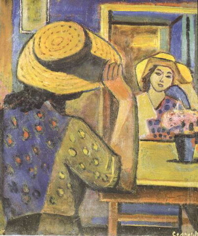 Blog post alert: I plead being as ignorant of Ukrainian artists as the next person, but a post, Women in Ukrainian Art: Blank Spots in Ukrainian Art History at the Wilson Center's Internet Encyclopedia of Ukraine, has given me a way to begin learning about them. In this case Marit Selska (1903–1980). She was born in Lyiv; studied in Cracow, Vienna, and Paris; escaped the Holocaust (though most of her family perished); and had a productive career after WWII. I chose this image for its blue and yellow Ukrainian colors and for the thoughtful introspection on the subject's face. Would that the choice of a hat and personal stories were all that Ukrainians—and the world—had to worry about today!